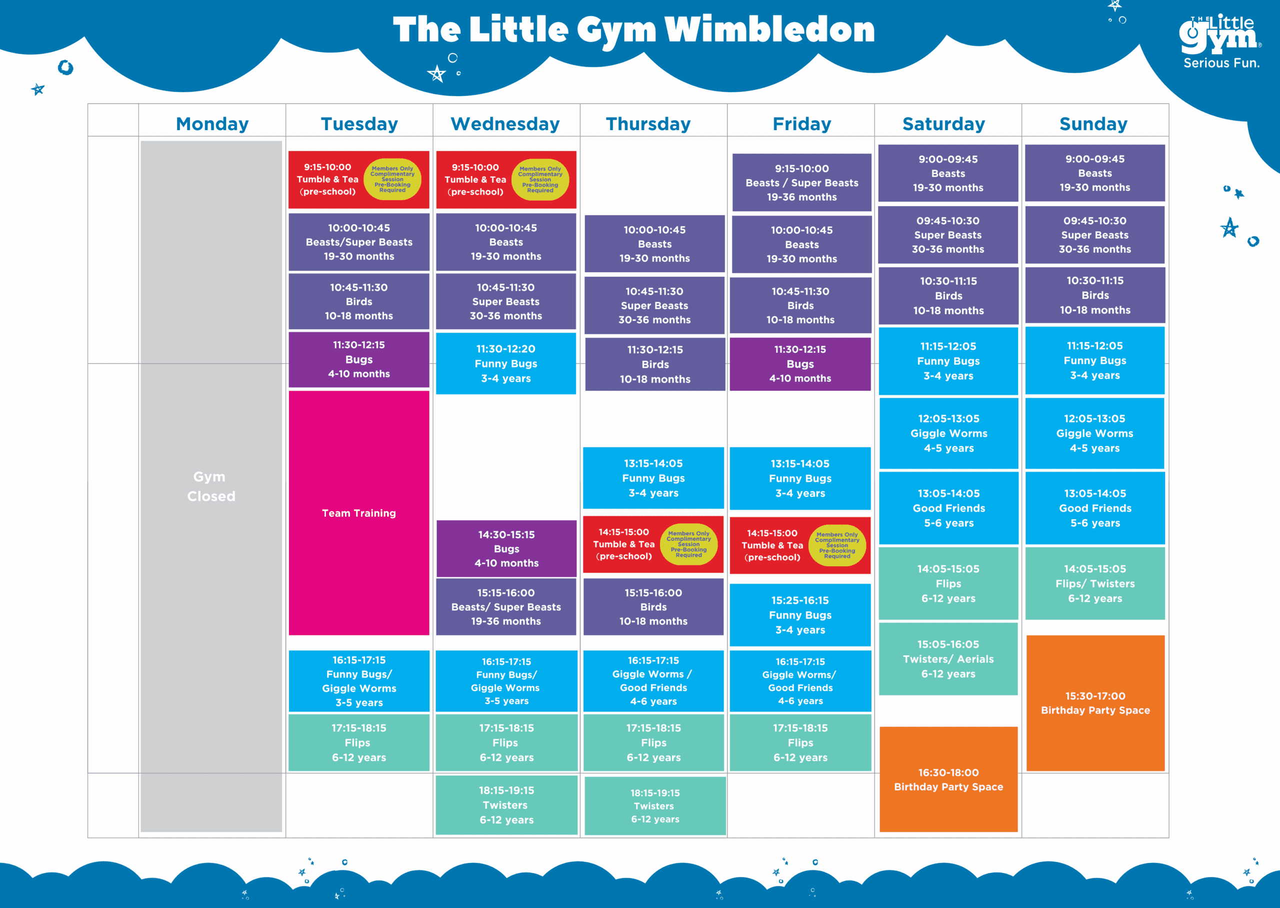 Classes run year round and weekly during Term Time, with alternate schedules posted in term time breaks.